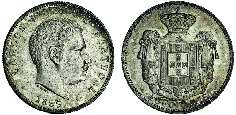 Portugal, Carlos I (1889-1908), 1,000-Reis, 1899, head right, crowned shield (KM.540), extremely fine