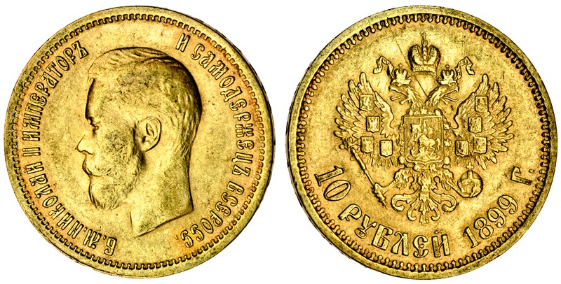 (g) Russia, Nicholas II (1894-1917), 10-Roubles, 1899, head left, rev. Imperial eagle (F.179; KM.64), very fine