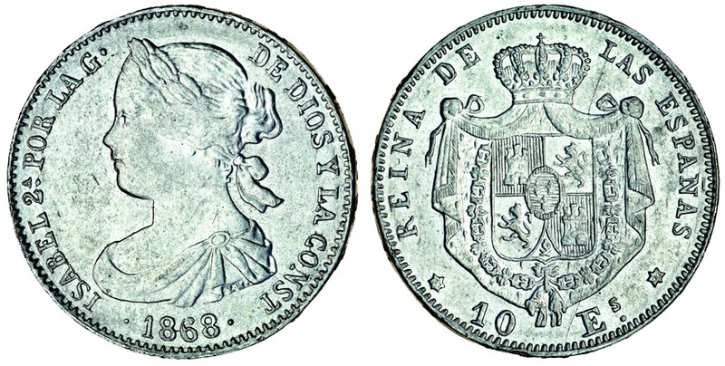 (x) Spain, Isabel II (1833-68), contemporary copy in platinum of a 10-Escudos, 1868, draped bust left, rev. crowned arms, 8.45g, extremely fine