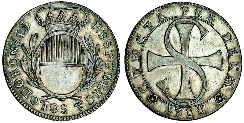 Switzerland, Solothurn, 10-Batzen, 1788 over 87, crowned shield, rev. large S on cross (DT.682b; HMZ.867; KM.51), usual weakness in centre of shield, brilliant uncirculated