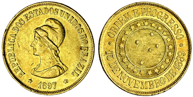 (g) Brazil, Republic, 20,000-Reis, 1897, bust of Liberty left, rev. Southern cross (F.124; KM.497; Russo 717), very fine