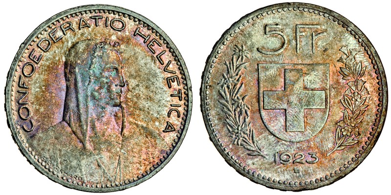 Switzerland, Confederation, 5-Francs, 1923, William Tell right, rev. shield (KM.37), extremely fine