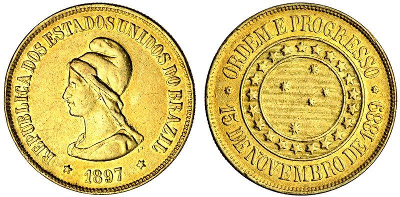 (g) Brazil, Republic, 20,000-Reis, 1897, bust of Liberty left, rev. Southern cross (F.124; KM.497; Russo 717), about extremely fine