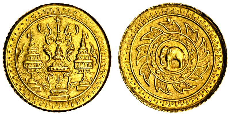 (x) Thailand, Rama V (1868-1910), 2½-Baht (Pot Dueng or Tong Pad Duang), 2.01g, undated (1894), umbrella, rev. elephant in chakra (F.26d; KM.13.5), small marks on edge, good very fine