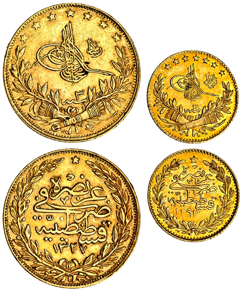 (g) Turkey, Abdul Hamid II (1876-1909), 100-Piastres, year 3 (F.36; KM.725), very fine, 25-Piastres, year 27 (F.43; KM.729), extremely fine (2)