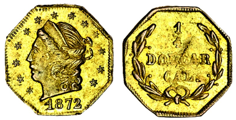 (x) United States of America, California octagonal Quarter-Dollar, 1872, head of Liberty wearing coronet left, 13 stars around, rev. 1/4 dollar cal. in wreath, very fine