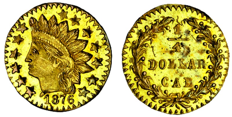 (x) United States of America, California round Quarter-Dollar, 1876, Indian head left, 13 stars around, rev. 1/4 dollar cal in wreath, extremely fine