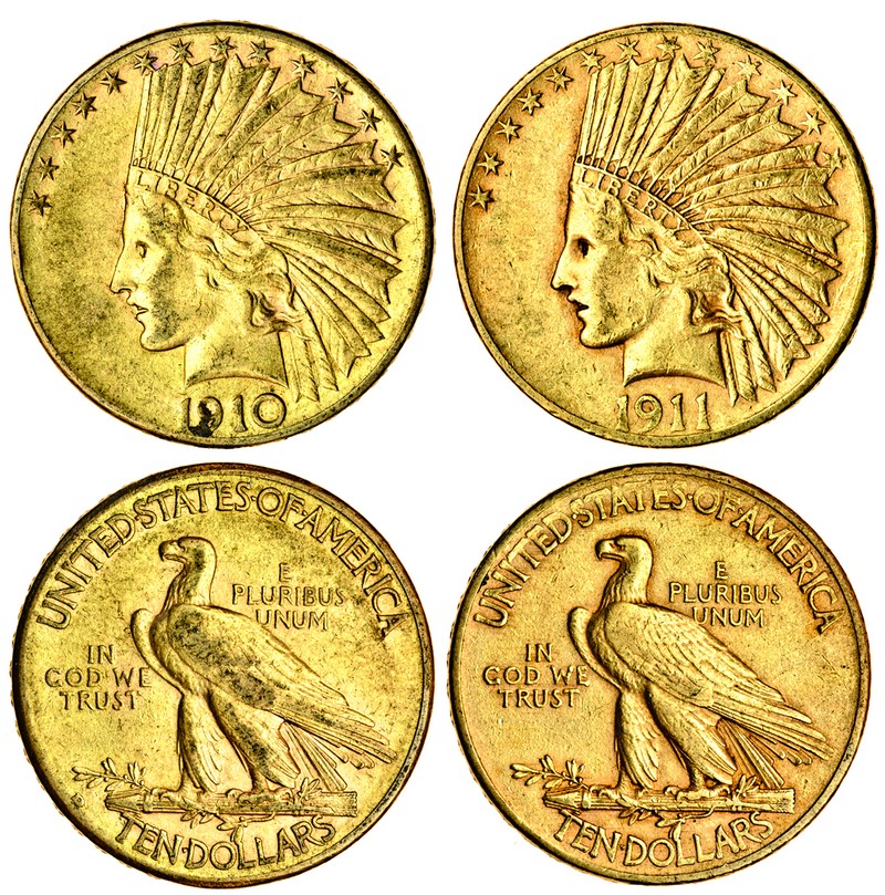 (g) United States of America, 10-Dollars (2), 1910 D, 1911, Indian head left, rev. eagle, very fine (2)