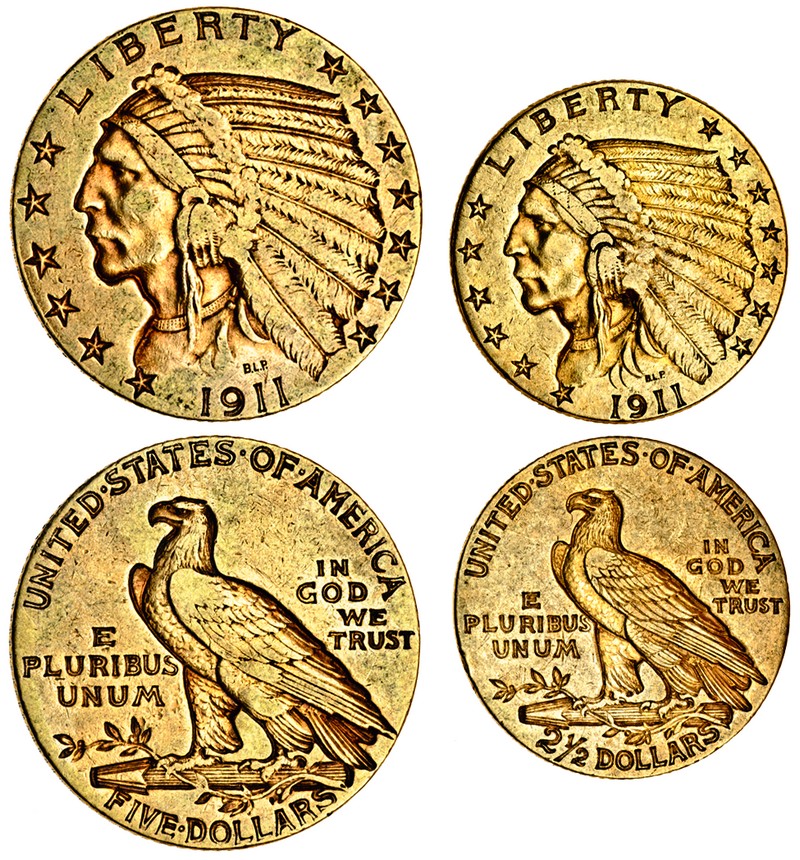 (g) United States of America, 5-Dollars, 1911, Indian head, very fine, 2½-Dollars, 1911, Indian head, very fine (2)
