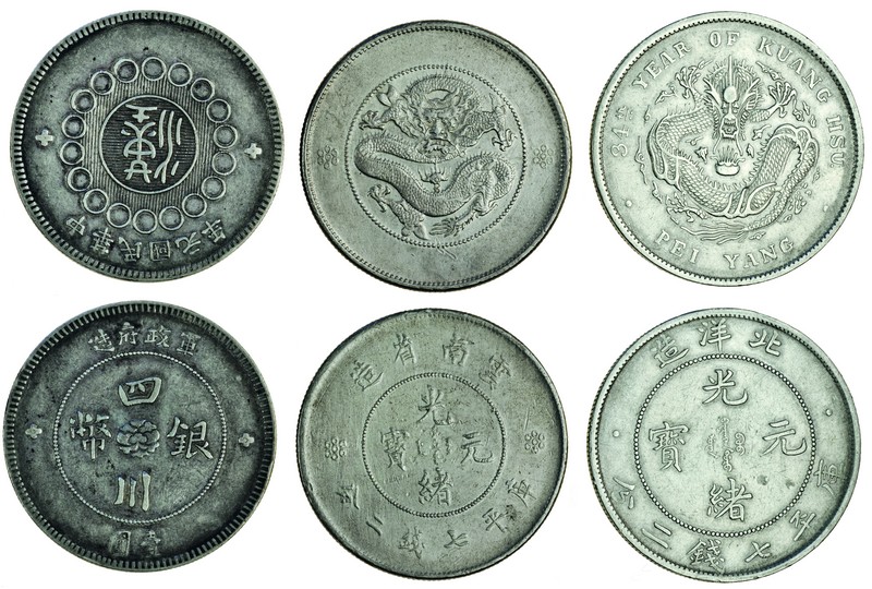 China, Chihli, Dollar, year 34 (1908), long spine to dragon (KM.73.2), Szechuan, Dollar, year 1 (1912) (KM.456), Yunnan, Dollar, no date (1911-15), one circle below pearl (KM.258), very fine (3)