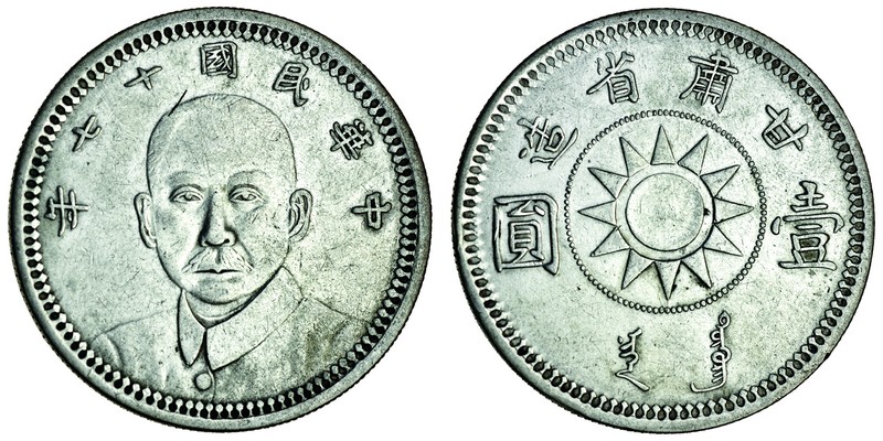 China, Kansu, Dollar, year 17 (1928), bust of Sun Yat Sen, rev. legend round national star (Dav.220; Kann 760; KM.Y410), good very fine