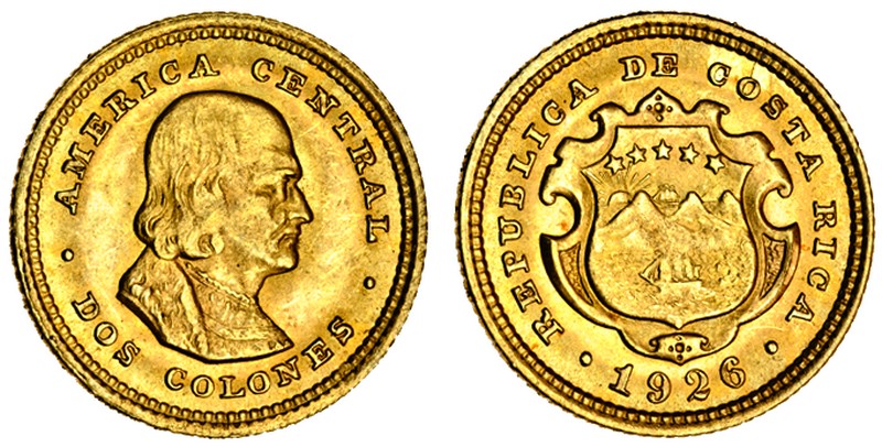 (x) Costa Rica, Half-Escudo, 1864 (F.10; KM.97), fine, 2-Colones, 1926 (F.22; KM.139), good very fine (2)