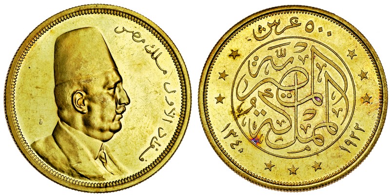 (g) Egypt, Fuad (1922-36), proof 500-Piastres, AH1340 (1922), yellow gold, bust right, rev. legend (F.26; KM.342), hairlines, extremely fine