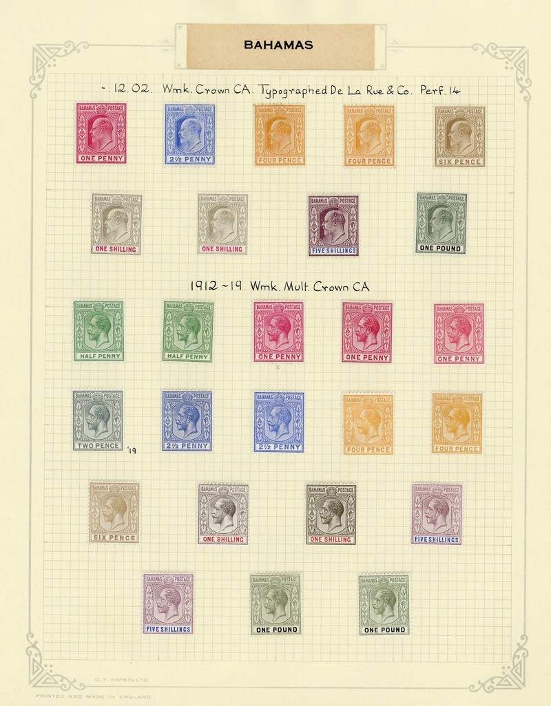 1901-68 mint collection on pages, hundreds including 1901-03 set, 1902-10 1d. to £1, 1906-11 ½d., 1d., 2½d. and 6d., 1911-19 set, 1912-19 to £1 (2), 1917 to 1919 War Tax, 1921-29 set, 1931-37 ½d. to £1, 1930 Tercentenary, 1938-52 ½d. to £1, 1942 Columbus, 1948 Eleuthera, 1948 Wedding, 1954-63 set, 1964 New Constitution, 1965 ½d. to £1, 1967-71 1c. to $3, Special Delivery, etc., chiefly fine. Cat. £2,200+
