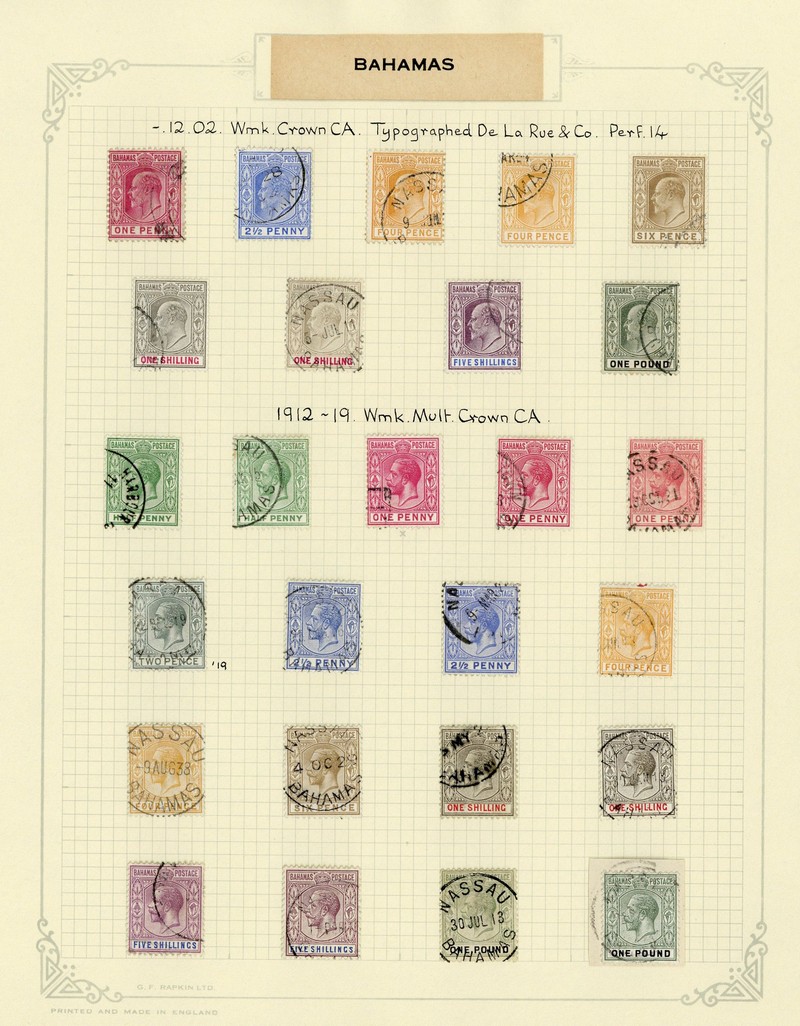 1901-54 used collection on pages, 188 stamps including 1901-03, 1911-19 and 1921-29 Staircase sets, 1906-11 ½d. to 6d., 1917-19 War Tax, 1912-19 to £1 (2, one a little faded, the other fine on piece), 1921-37 ½d. to £1, 1930 Tercentenary, 1938-52 ½d. to £1, 1942 Columbus, 1948 Eleuthera, 1948 Wedding, 1954-63 set, Special Delivery, etc., many fine. Cat. £3,100+
