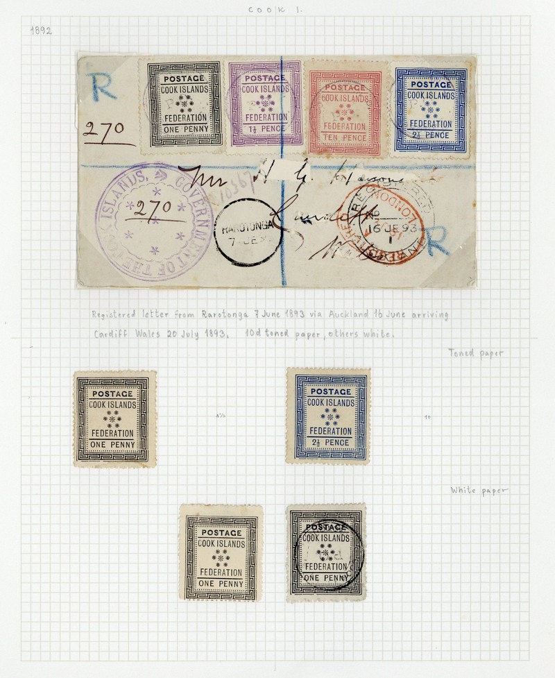 1892-1950 mint and used collection including 1892 set unused and used (2) one on 1893 envelope (surface faults) registered to Wales, 1893-1919 Definitive range of issues with values to 1/-, 1921-23 2/- to £1 mint and later issues with values to 3/-; also companion selections of Aitutaki and Penrhyn Island; generally good to fine