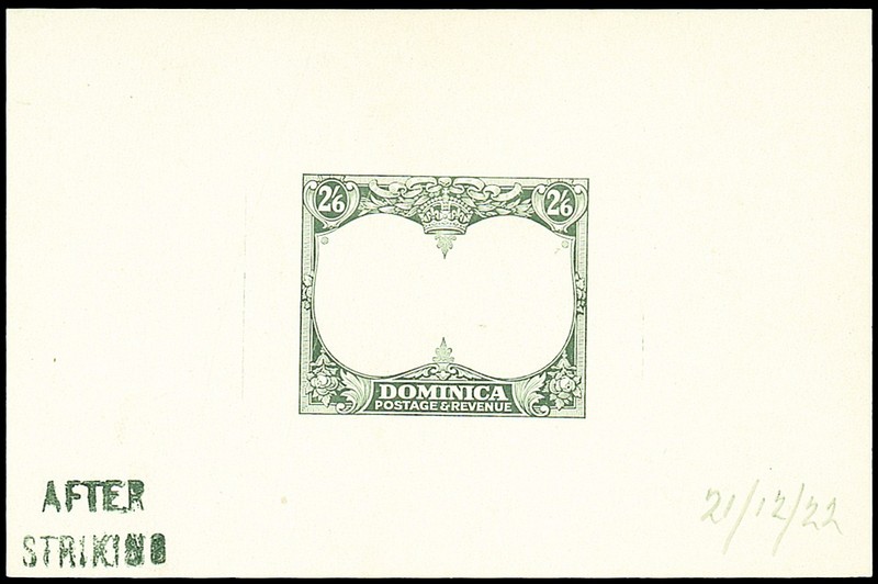 — 2/6d. frame in black on glazed card(92x60mm.), marked "after striking" and dated "21/1922" in pencil, fine. Photo