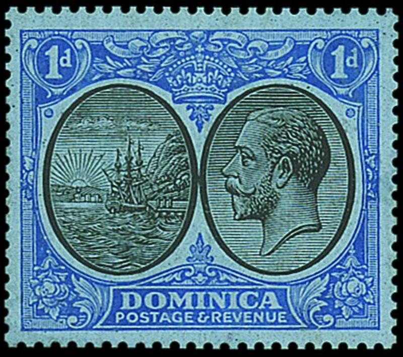perforated colour trial: 1d. in black and blue on blue (colours of the issued 2/-) on MCA paper; fine. Photo