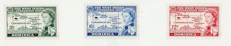 1958 Caribbean Federation set imperforate and affixed to a part of a page with violet "received/-9 oct 1957/federal secretariat/barbados" cachet on reverse, fine. S.G. 159-161 vars.