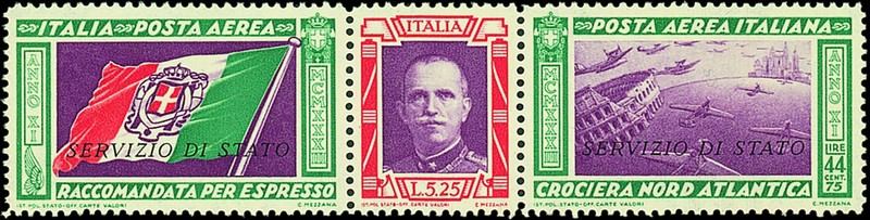 1933 Air Balbo "servizio di stato" 5L. 25 + 44L. 75 green and scarlet/scarlet/green, unmounted mint, fine and rare. S.G. O379, £3,000. Sassone €6,300. Photo