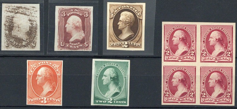 1861-93 selection of nine imperf. proofs on India, including 1873 2c. and 3c., 1887-88 2c. green, 1890-93 2c. lake block of four, etc., good to fine