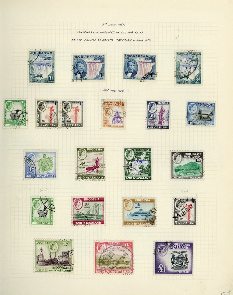 The Rhodesias in two stockbooks, contained in a carton, with Rhodesia, Rhodesia and Nyasaland and Southern Rhodesia, largely mint blocks, etc. with a few small varieties, and a selection of covers; also South Africa 1913-24 selection of used blocks of four to 2/6d., some unused postal stationery and a few Great Britain 1d. reds on cover
