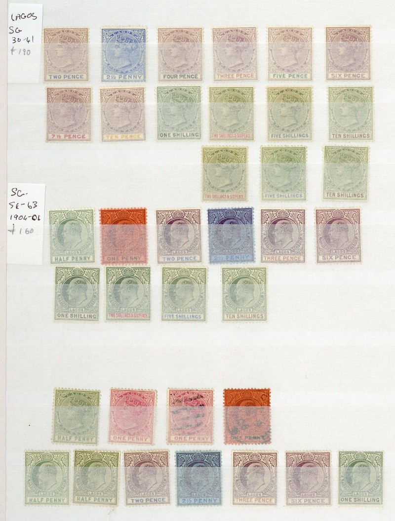 1887-1959 mint and used collection of the Nigerias arranged in a stockbook including mint Lagos 1887-1902 to 10/-, 1904-06 to 10/-; Niger Coast 1897 to 10/-; Southern Nigeria 1901-02 to 10/-, 1904-09 to £1, 1912 values to £1 and Nigeria 1914-20 values to £1. Generally fair to fine. (hundreds)