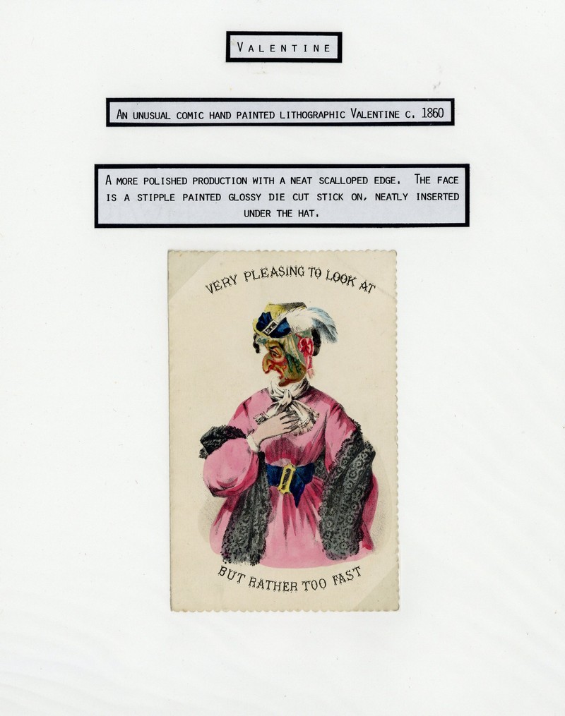 1860-1900 (c.) eleven cards, various types, including one with a figure with chromolithographic head, fabric coat and trousers and handpainted border, with embossed border; good to fine