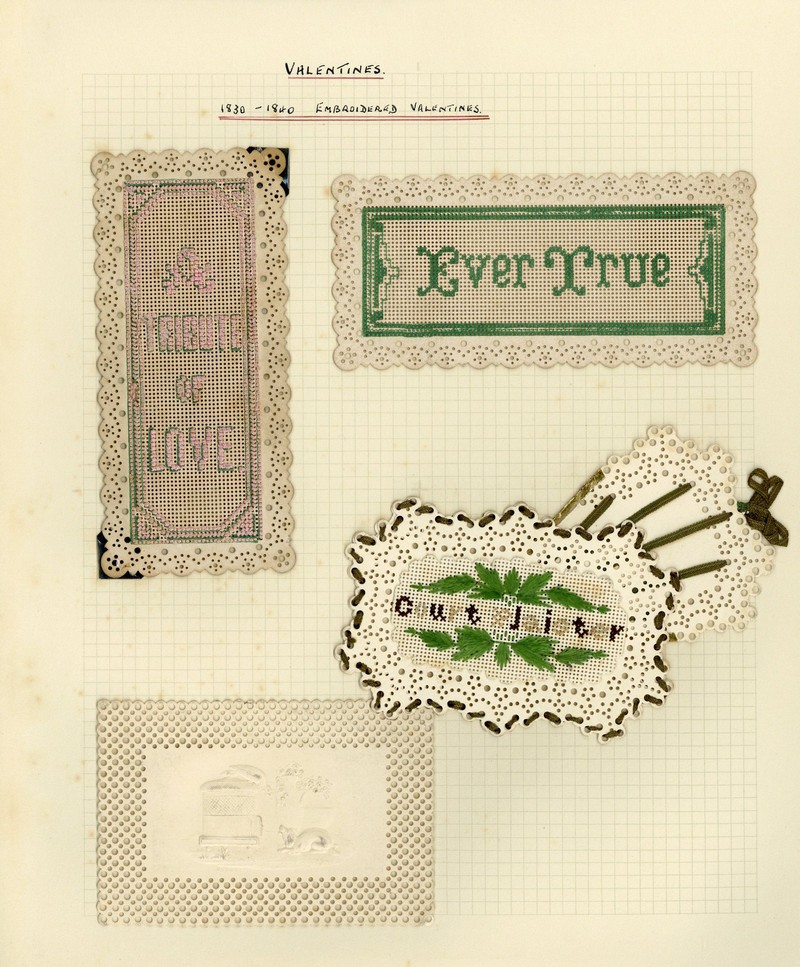1830-40 (c.) four cards, one a fine "Bookmark" on a background of Moire silk by John Windsor of Clerkenwell; fine