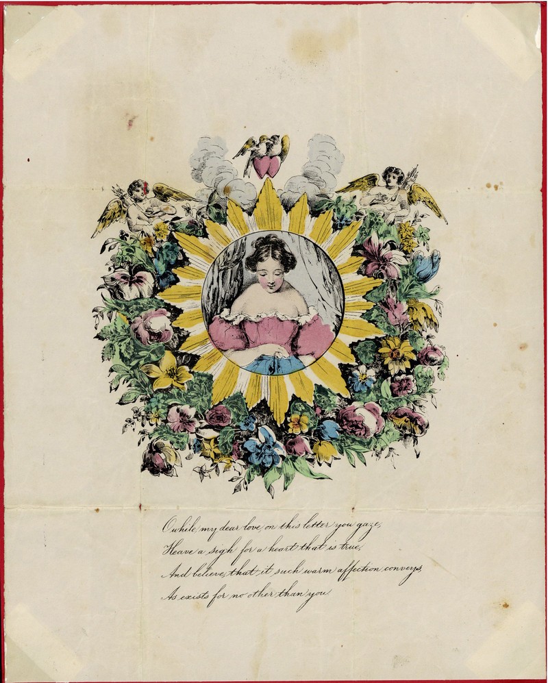 1830-50 (c.) four cards, including hand coloured with Lady at window with a letter, etc., good to fine
