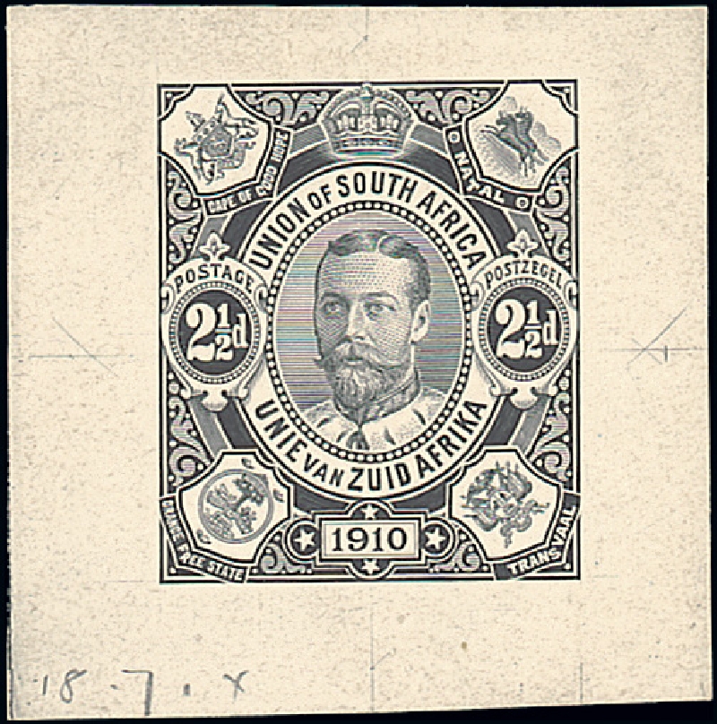 Die Proof in black on proof paper (42x42mm), with faint guide lines, pencil date at foot "18.7.X", "e.f.h./harpenden" on reverse; fine. Photo