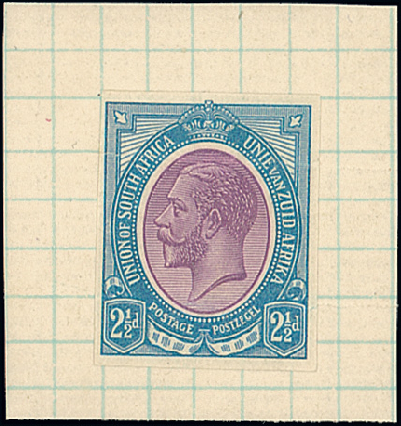 2½d. in purple and blue of the 5/- value affixed to grid paper; some light creasing, fresh. Photo