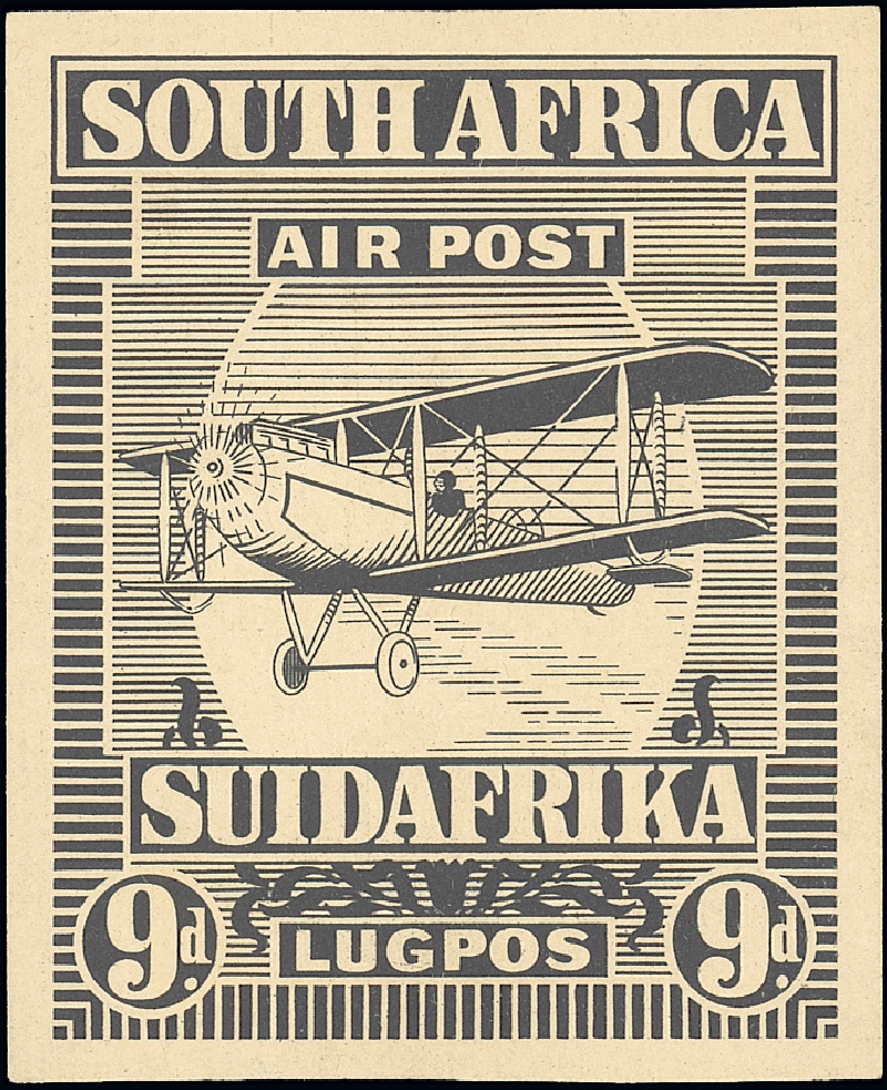 Black and white print of the 9d. value from the engraver's master design, 86x104mm, on soft glazed paper. Fine. Photo