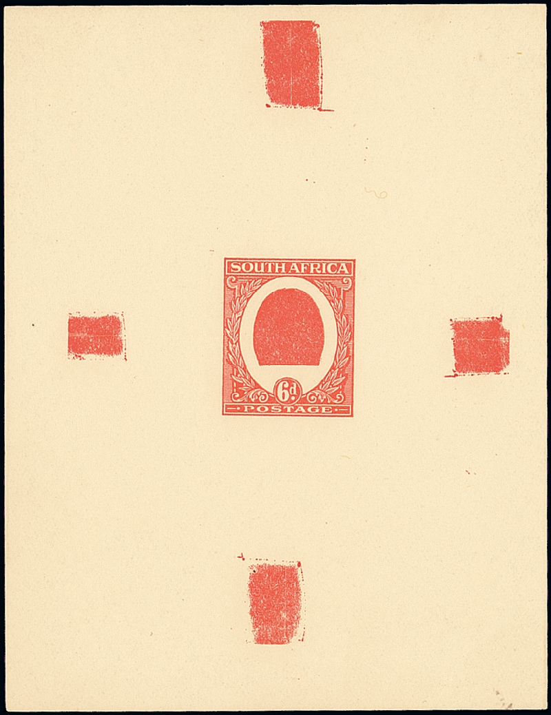 6d. frame die proof with uncleared centre, in scarlet-vermilion on proof paper (78x101mm); exceptionally fresh and fine. Photo