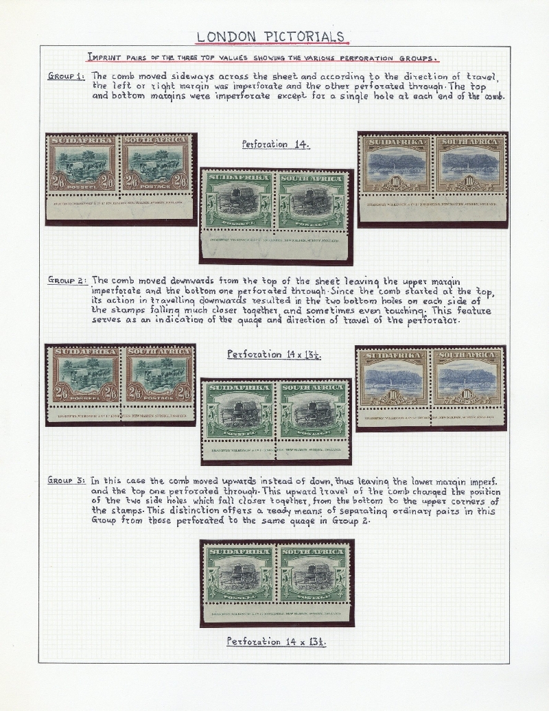 A specialised collection on leaves, mainly showing imprint pairs or blocks of the different groups, including 2d. block from the lower two rows, some oval perforations, 2/6d., 5/- (2) and 10/- imprint pairs perf.14x13½; also a few interpanneau pairs or blocks and a few others; large part original gum to unmounted mint. A very desirable collection
