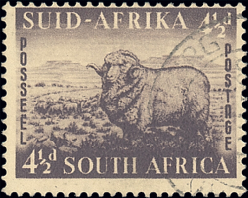 4½d. Merino ram, variety yellow omitted, very fine used with light c.d.s. Rare with only two examples recorded. PFSA certificate (1969). Photo