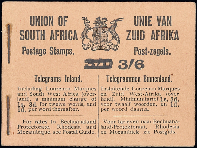 1924 3/6 on 3/- in black on salmon cover, complete with two panes of each 2d., 1d. and ½d. 2d. inverted watermark); slight rusting around the staples, good to fine. S.G. SB4, £1200. Photo