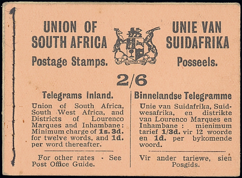 1926 2/6d. black on salmon with country name in capitals, complete with four panes of 1d. and panes ½d.; fine. S.G. SB5, £2750. Photo