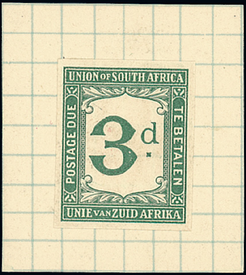 Imperforate colour trial, 3d. in green and affixed on grid paper. Fine. Photo