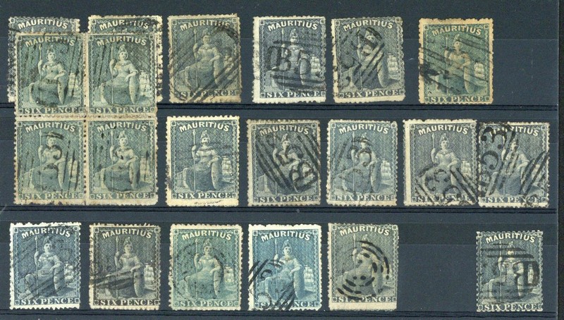 6d. slate, a used range comprising a block of four (lower right corner thinned) and seventeen singles (one reperforated), mostly cancelled "B53", condition a little mixed. S.G. 54, £2100