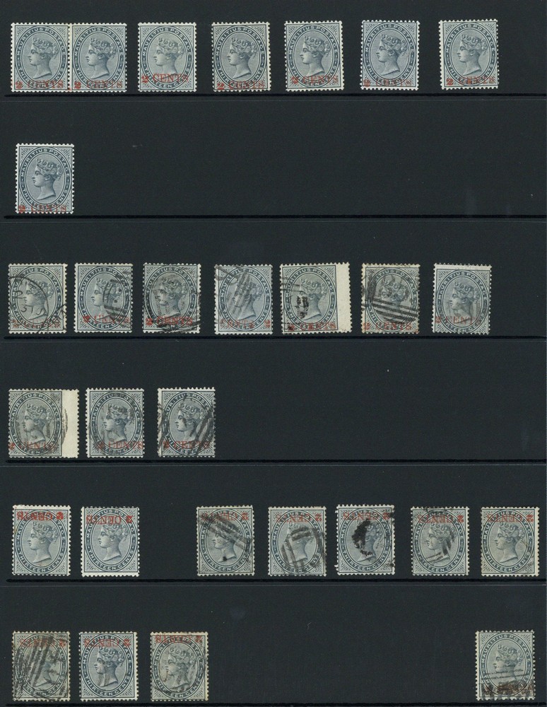 Eight unused including a pair and ten used examples, mostly fine; also two unused (both without gum) and eight used examples with surcharge inverted none of which are guaranteed genuine. S.G. 117, £1720