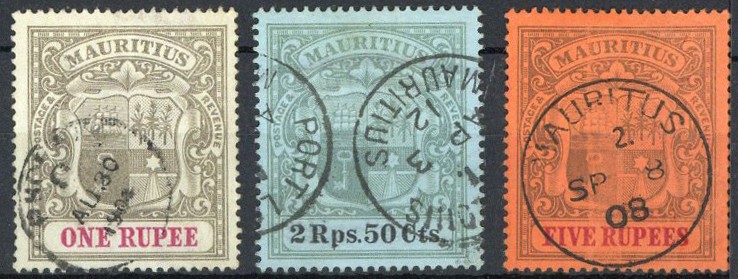 1r., 2r.50 and 5r., each cancelled by c.d.s. with clear date. S.G. 153-155, £450.