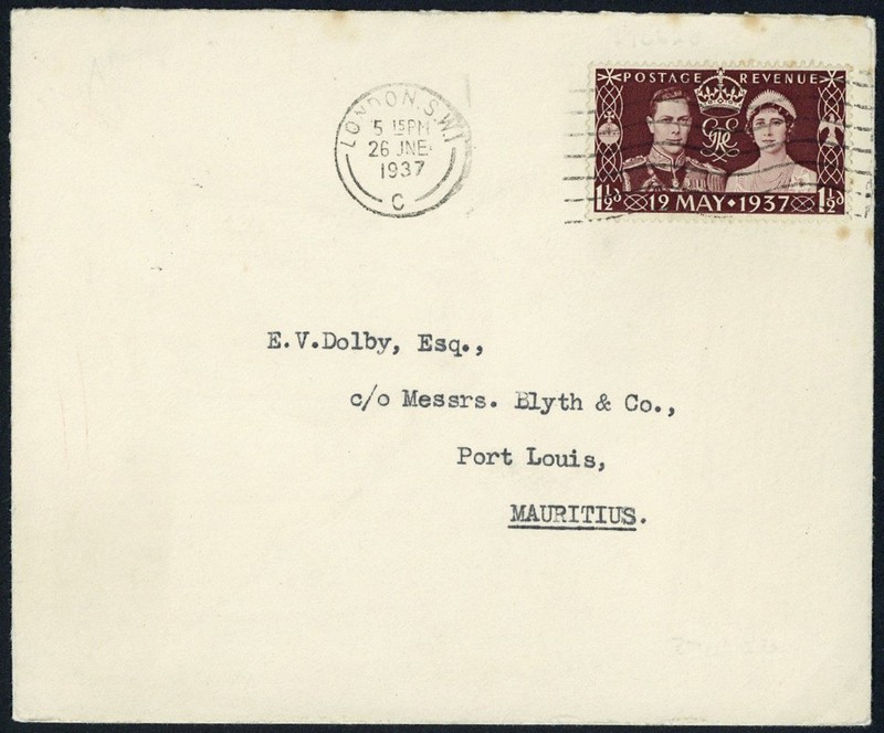 1937 (26 June) "All-up" test flight envelope flown by Imperial Airways from London to Durban, addressed to Port Louis and franked at 1½d.; a few minor tone spots