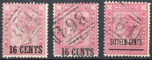 1883 "16 cents" on 17c. (2) and "sixteen cents" on 17c., good to fine strikes. S.G. Z62, Z63, £288