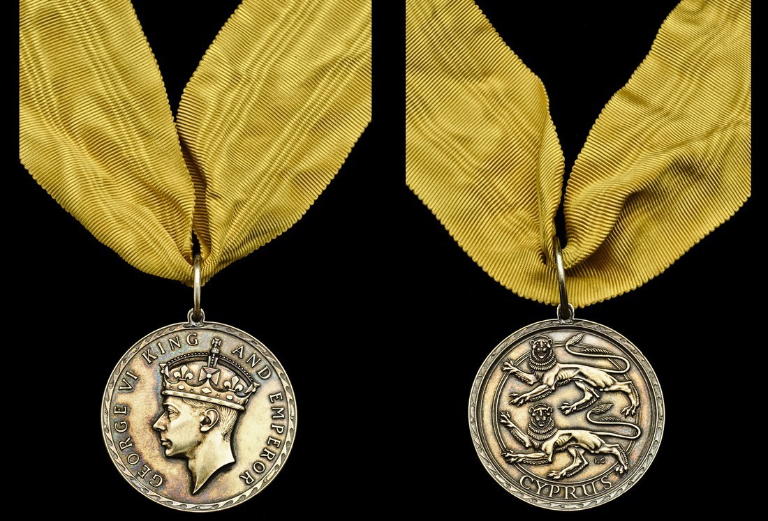 Badge of the Certificate of Honour for Cyprus, G.VI.R., silver-gilt neck Badge, 42mm, with integral loop and ring suspension, unnamed as issued, extremely fine and rare, with neck riband, in Royal Mint case of issue