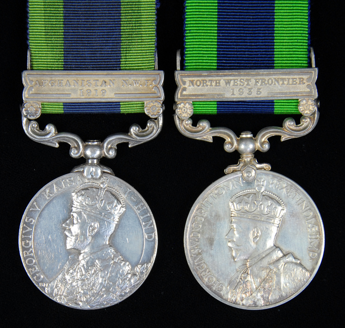 India General Service 1908-35, G.V.R., one clasp (2), Afghanistan N.W.F. 1919 (242093 Pte. R.L.T. Smith. Hamps. R.), edge tooled prior to naming; North West Frontier 1935 (3308930 Pte. H. Mallin. H.L.I.), light contact marks to first, good very fine, the second extremely fine (2)