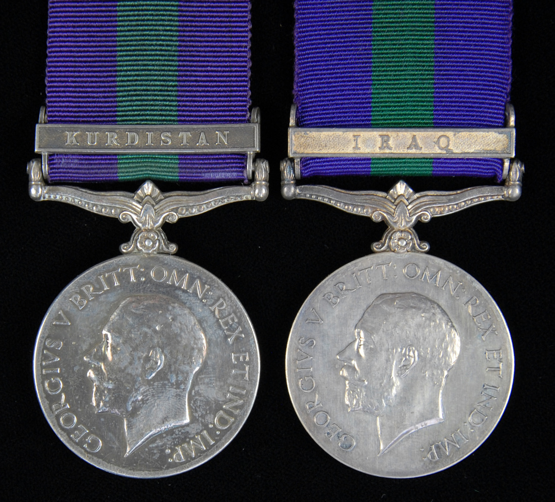 General Service 1918-62, G.V.R., one clasp (2), Kurdistan (3236708 Pte. J. Thomson. Cameronians.); Iraq (126316 Gnr. A.S. Taylor. R.A.), good very fine (2)