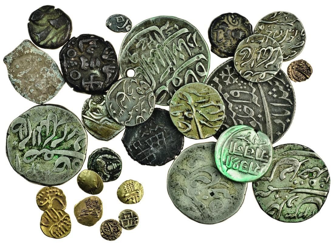 South India, miscellaneous, gold Fanams (8), including issues of Tipu Sultan (2), Coorg (1), Ikkeri (1), Negapatnam (1), Hyderabad, dump Rupees (4), Quarter-Rupees (4), Cochin, 2-Puttun, Ancient, coins of the Guptas (2), Kuninda (1), Kashmir (1), Kangra (1), fanams very fine or better, other coins about fine to very fine (26)