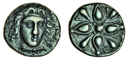 Carian Satraps, Hidrieus (c.351-343 BC), AR Quarter-Drachm, 0.84g, laureate head of Apollo three-quarters facing right, rev. ipi, ornamental star (SNG Finland 279), toned, rare, very fine
