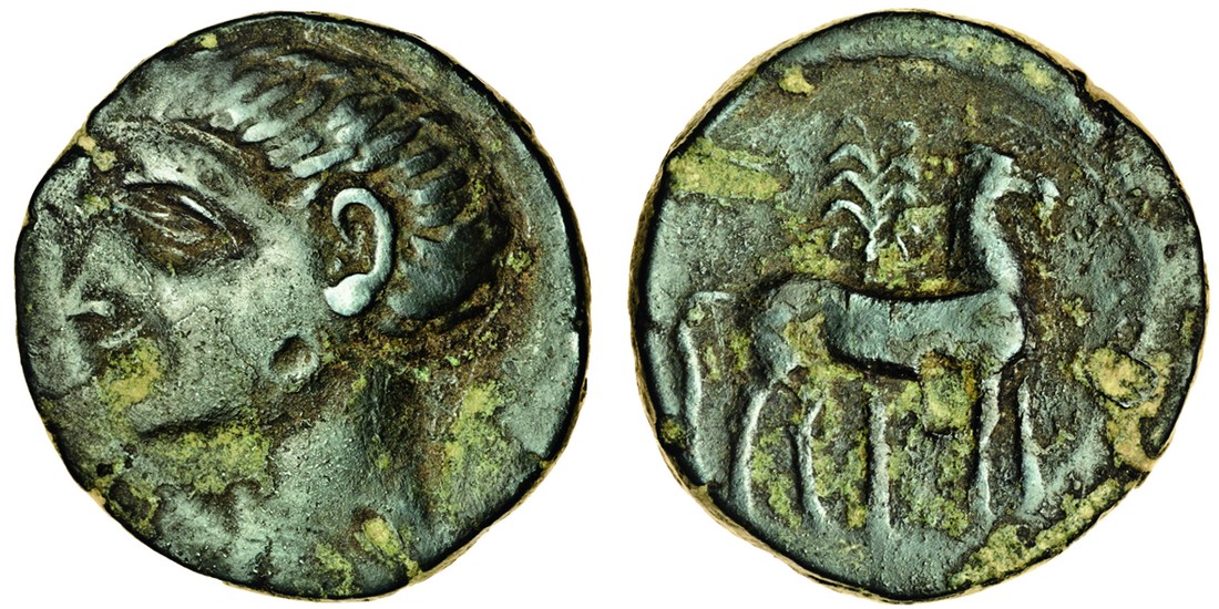 Spain, under Roman Occupation, Carthago Nova (after 209 BC), AE 22mm, bare head left (?Scipio Africanus), rev. horse standing in front of palm tree, right (SNG BM 127-128; Villaronga 282), about very fine